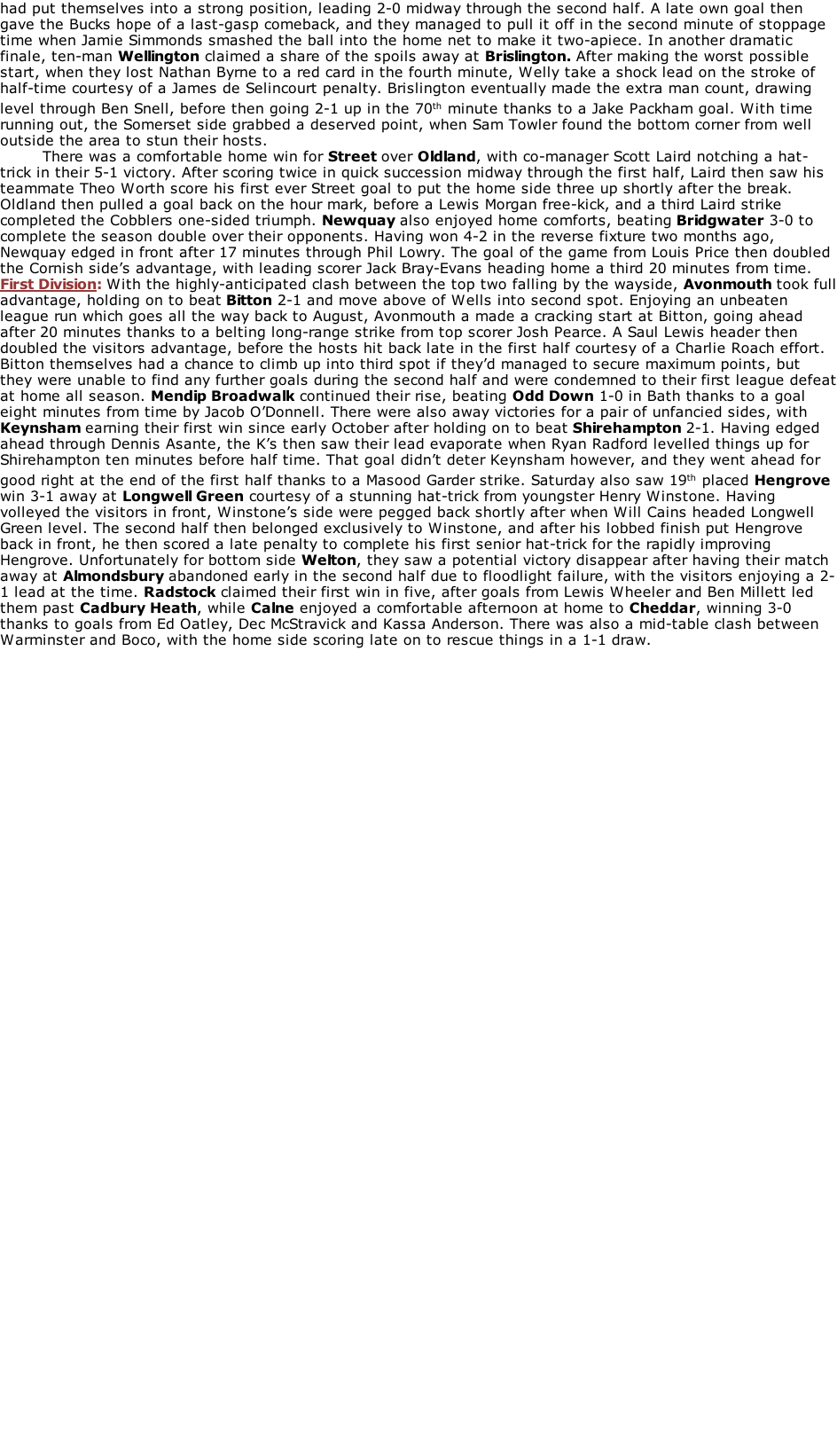 Mendip Broadwalk (navy blue) v Devizes Town (red/white) Shirehampton (red/black) v Cheddar (yellow)  15-11-2025