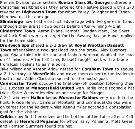 Uhlsport Hellenic League Hallen (blue/black) v Hamworthy Recreation (green) Isuzu FA Vase Roman Glass St. George (white/black) v Thornbury Town (blue/white)  13-12-2025