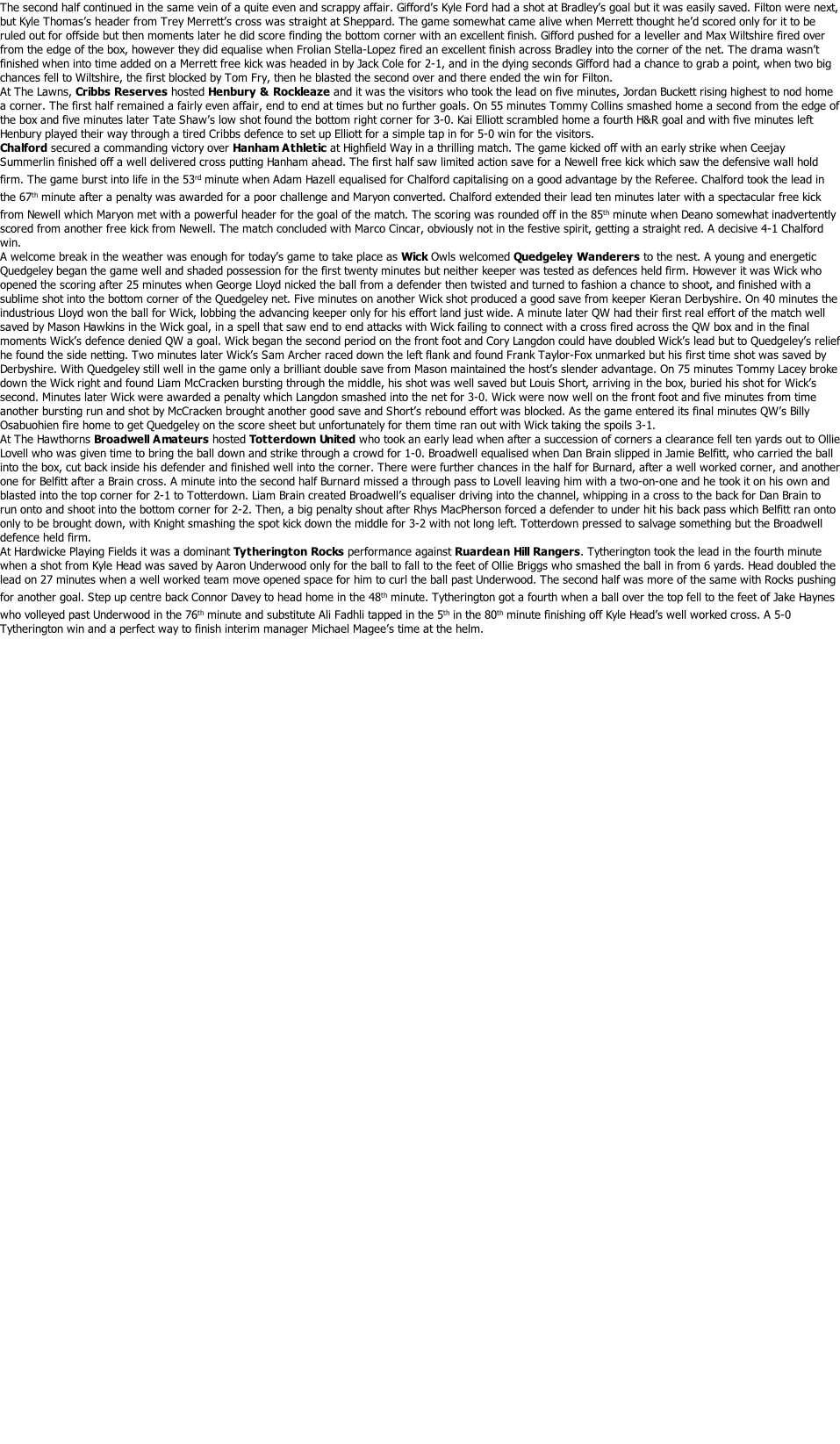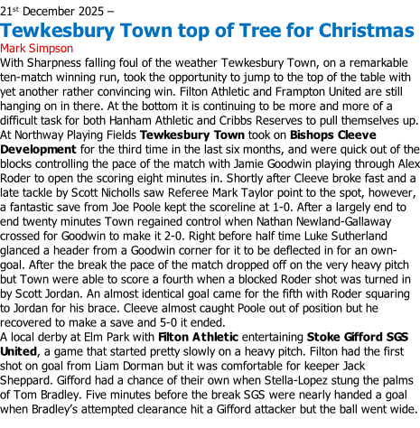 Marcliff Gloucestershire County League Henbury & Rockleaze (red/orange) v Tytherington Rocks (blue/white) Filton Athletic (navy blue/white) v Hallen Res (maroon) GFA Senior Amateur Cup  13-12-2025