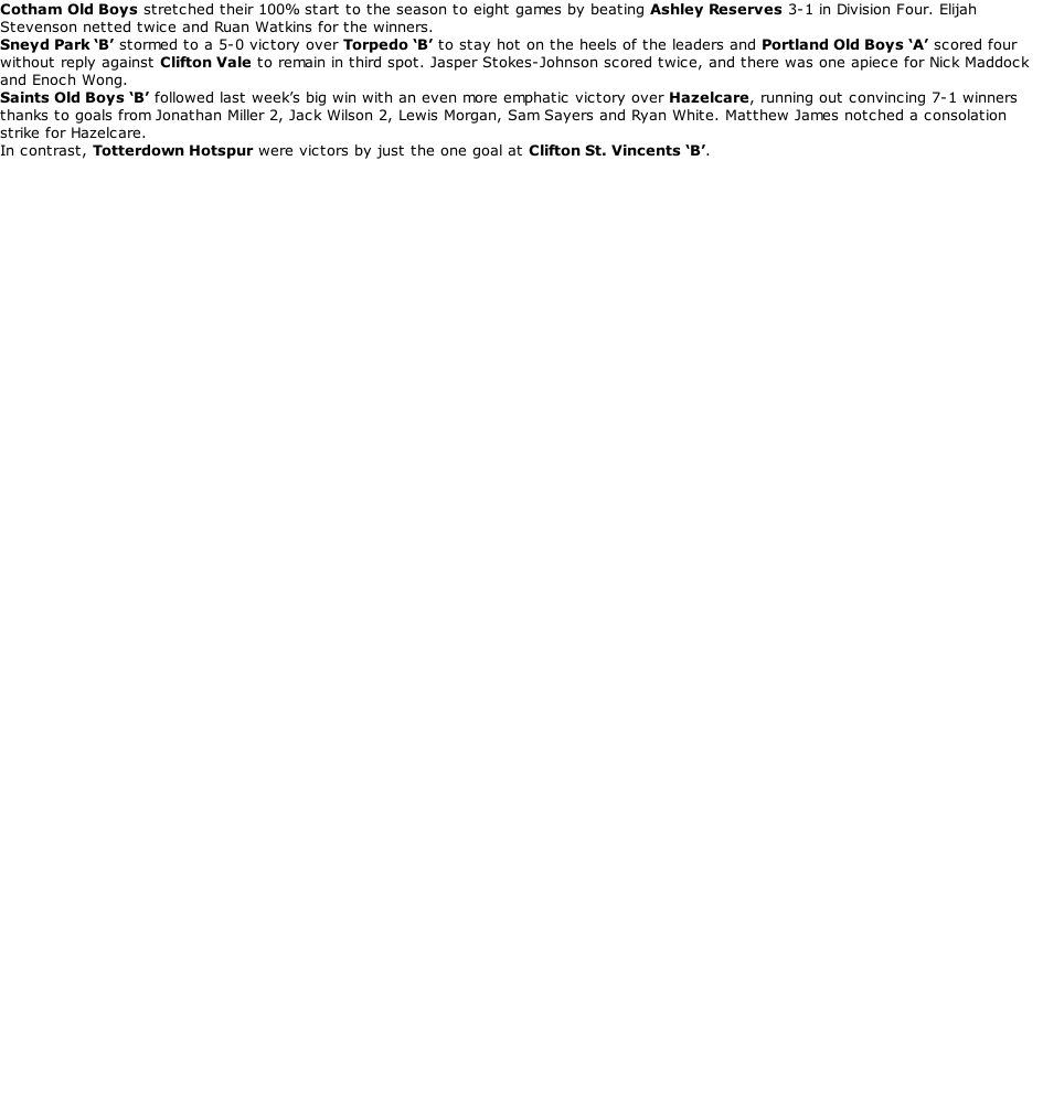 Bristol Downs League Hazelcare (light green) v Totterdown Hotspur (dark green) Saints OB B (red/white) v Saints OB C (yellow) Castle Green (green) v DDAS (yellow) GFA Minor Cup  22-11-2025