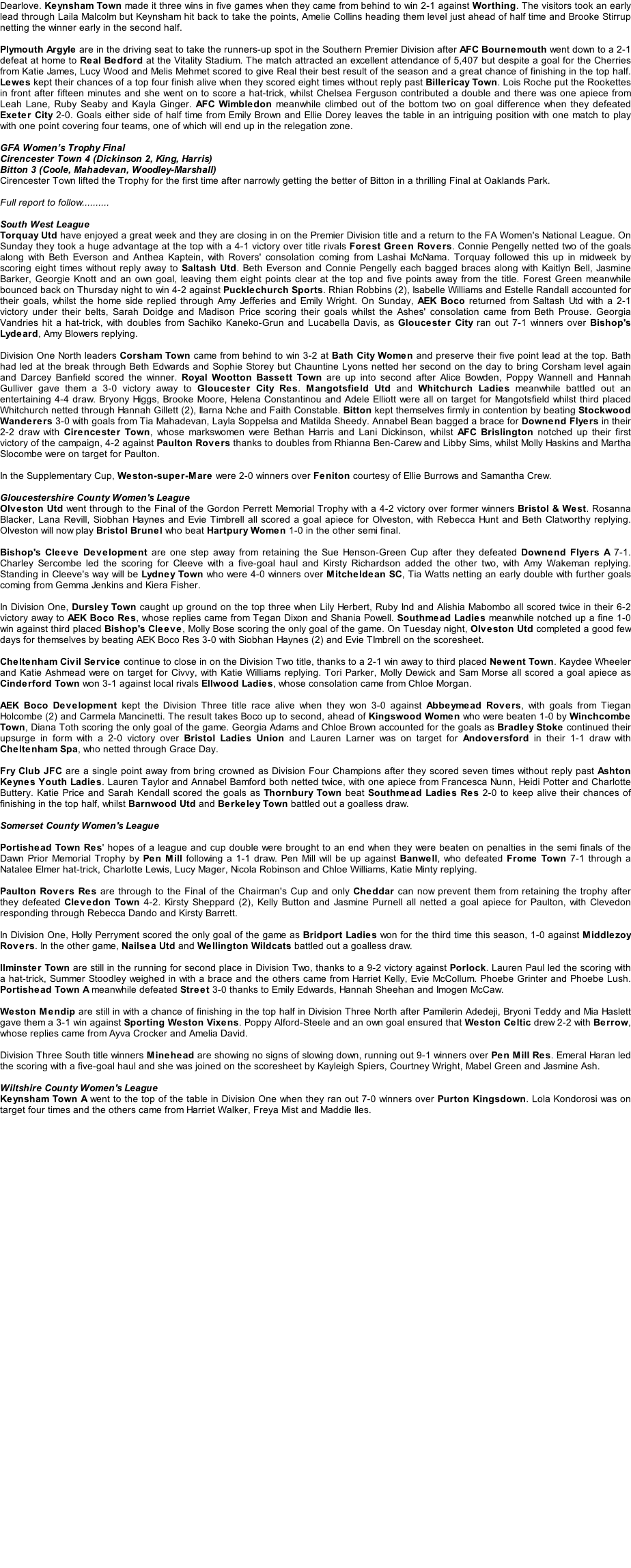 Photos: Bitton (red/white) v Stockwood Wanderers (yellow/black) Mangotsfield Utd (maroon) v Whitchurch Ladies (yellow/blue) Women’s & Girls News